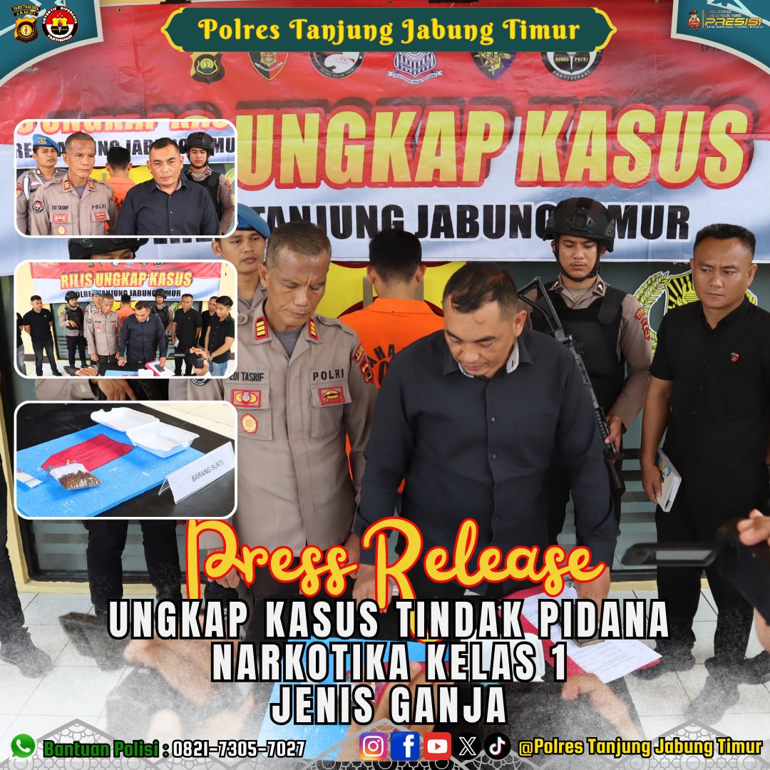 Tanjab Timur|Telago.co.id- Sat Res Narkoba Polres Tanjab Timur kembali mengungkap kasus narkotika, kali ini tersangka terjerat dalam kasus narkotika golongan 1 jenis ganja, tersangka berhasil ditangkap dengan total barang bukti …