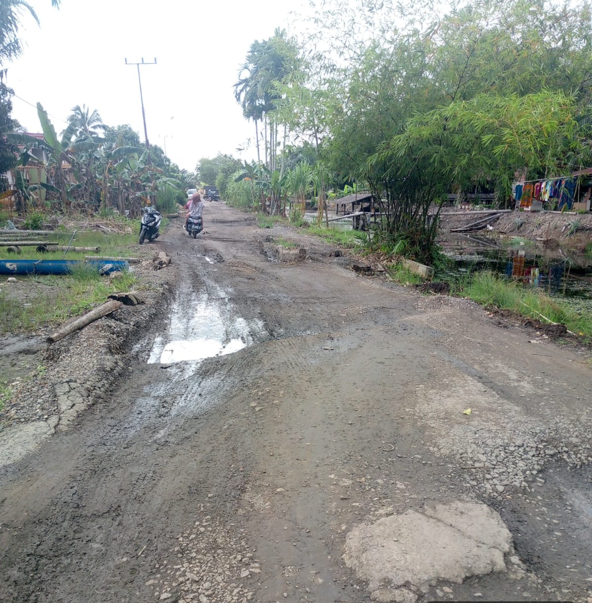 Akibat kerusakan tersebut, pengendara roda dua dan roda empat harus ekstra hati-hati. Tidak jarang kendaraan terperosok, tergelincir, bahkan terpaksa berputar balik karena tidak dapat melintas. Kondisi ini sangat menyulitkan warga, terutama pada musim hujan dan saat air pasang.