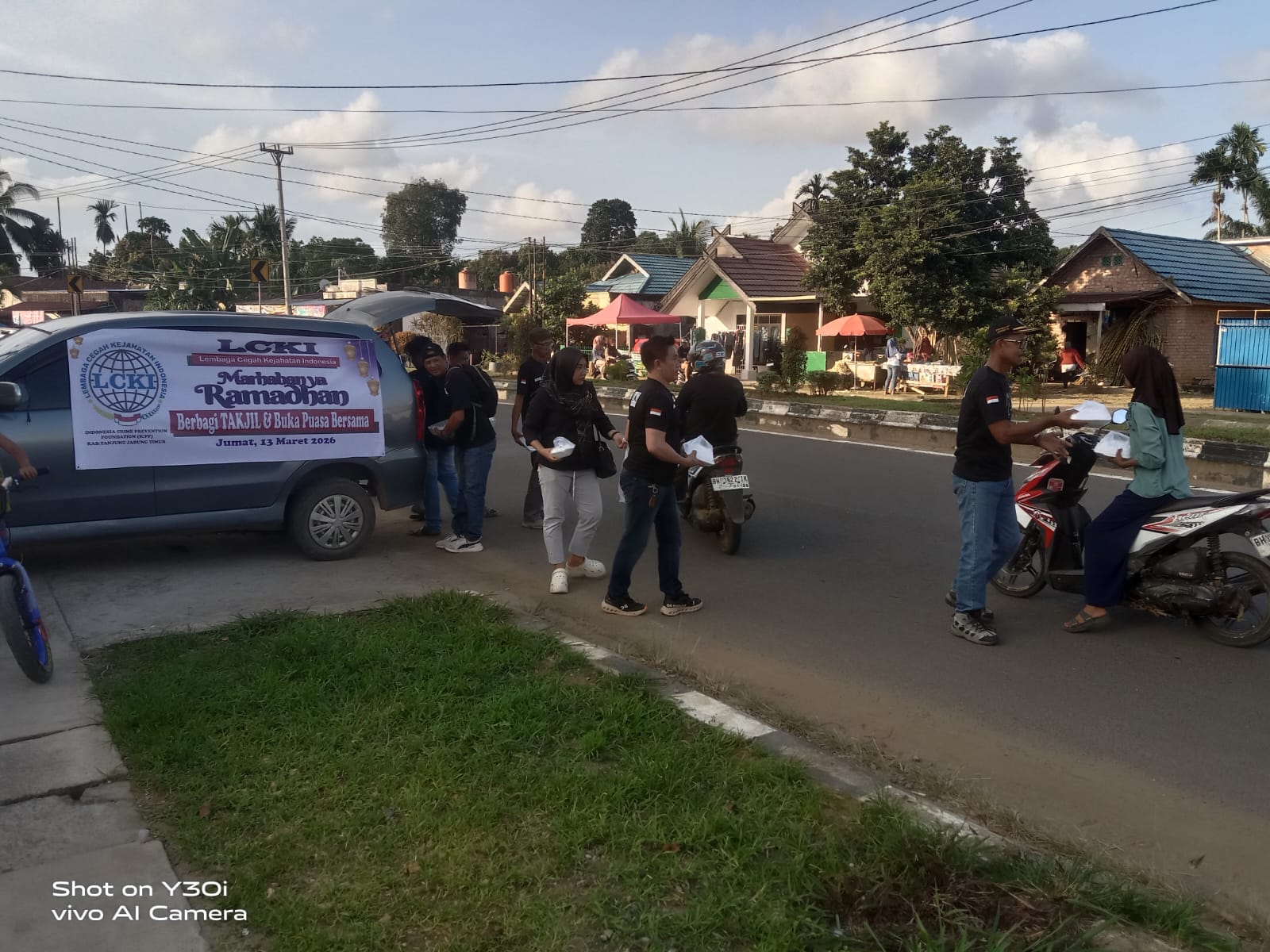 Sejumlah pengurus dan anggota LCKI turun langsung ke jalan membagikan paket takjil kepada pengendara motor maupun masyarakat yang melintas menjelang waktu berbuka puasa.