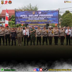 Tanjab Timur|Telago.co.id- Polres Tanjung Jabung Timur menggelar Apel Gelar Pasukan Operasi Patuh Siginjai 2025 sebagai langkah awal dalam rangka meningkatkan disiplin dan kepatuhan masyarakat dalam berlalu lintas, Senin 14 Juli 2025.