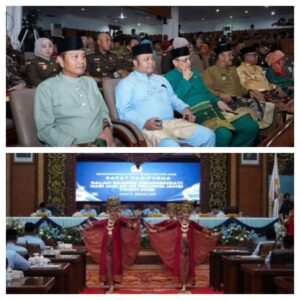 Jambi|Telago.co.id– Bupati Tanjung Jabung Timur, H. Romi Hariyanto, SE di wakili Wakil Bupati Tanjab Timur, H. Robby Nahliansyah, SH hadir dalam rapat paripurna istimewa DPRD Propinsi Jambi yang diselenggarakan dalam rangka memperingati hari jadi Propinsi Jambi yang ke-68, Senin (06/01/2025)